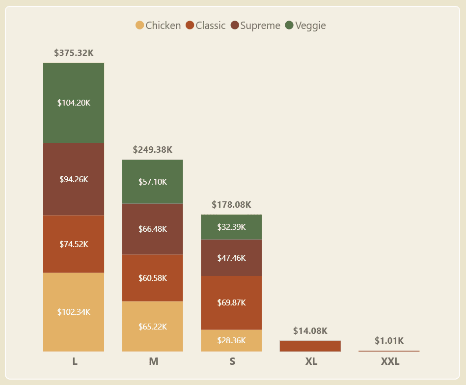 Large pizzas dominate order share (value-seeking behavior).